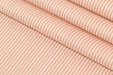 Audrey Sorbet is a 100% cotton multi-purpose fabric with a very thin stripe pattern in a pink color against a white background.