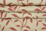 Becky Coral is a beautiful woven fabric which features a vine design in a coral color against an off-white background.