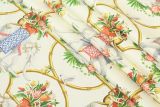 Before the Raj Ivory is a 100% cotton fabric with a print of rows of decorated elephants, birds and monkeys against an ivory background. This was designed by Howard Harrison. His art includes chinoiserie, shells & coral, gardens, butterflies, personified flowers, birds & animals, floral subjects, & fantasy & decorative themes.