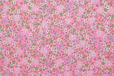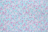 Bonnie Easy Care Water Resistant is a 60-inch wide cotton/poly blend fabric with a print of pink and white flowers against a solid color background.