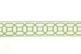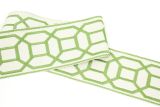 Border tape with an embroidered geometric design in a green color against a white background.