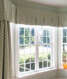 The custom Box Pleat Valance is a modern and elegant window treatment. Its clean design with inverted box pleats creates a sleek, polished style for any room.