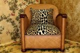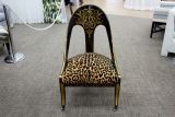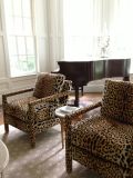 This is a printed velvet animal skin design in black and gold. The pictures of the leopard fabric were courtesy of The Blog From The Right Bank. Ally has a story on how she came to purchase this fabric for her upholstered chairs. She enjoys doing business with The Fabric Mill.Â