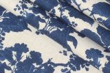 Briar Indigo with Crypton Home Finish is a durable upholstery performance fabric with an all-over print of leaves and vines in a blue color.