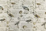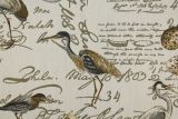 This Birdsong Seamist fabric is a very vivid design of beautiful birds, pelicans and eggs. Writings are by Meriwether Lewis, made famous during the Lewis and Clark expedition. It is woven on a heavy cloth. All neutral taupes, beige and soft browns.