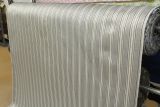 Bronte Porcelain is a woven striped fabric with a light shimmer in tones of blue and silver.