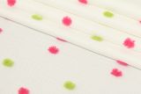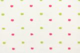 | Short Description | Calypso Carnival features raised fluffy circles in bright pink and green against a white slubby woven background. This adorable fabric is loved by young ladies for bedding, pillows, window treatments, table coverings and even tote bags! |