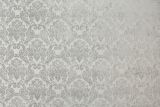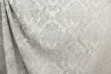 Chenille Damask is a woven fabric with a very soft feel in a metallic silver gray color.