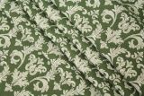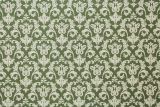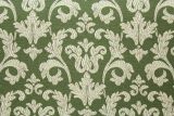Colbert Green is a woven damask pattern fabric from Spain in a cream color against a green background.