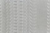 Cotton Eyelet Single Boardwhite is a beautiful eyelet fabric in a white color with a single border featuring an eyelet leaf pattern.