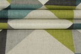 Covington Denmark Caper is a 100% cotton fabric with a geometric print in colors including beige, gray, green and black.