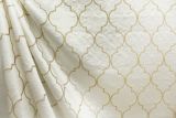 Covington Kismet Peal 12 is an elegant and durable woven fabric with an embroidered ogee pattern over a solid color background.