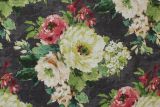 Covington Meraki Charcoal 948 is a striking large floral and leaf pattern in colors including red, pink, white and green against a charcoal background.