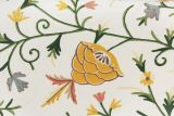 Crewel Embroidered Fabric TK-421 White is a beautiful embroidered floral and vine pattern in colors which include green, pink and mustard against a white background.
