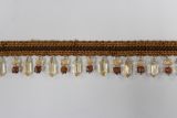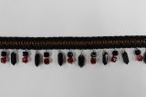 Parem is a 1.5-inch upholstery and drapery trim with dangling beads on a woven gimp.