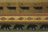 Deer Valley Apache is a beautiful woven fabric featuring an outdoor theme of leaves, deer, fish, bears and canoes in colors including brown, green and black.
