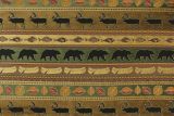 Deer Valley is a woven upholstery weight fabric featuring an outdoor theme of leaves, deer, fish, bears and canoes.