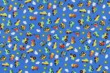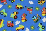 Demolition Trucks Blue 45" Cotton Print Fabric