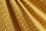 Diamond Ambra is a woven 100% spun rayon fabric from Italy with a diamond pattern in a shimmering gold color.
