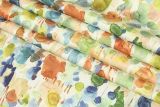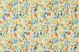 Dodds Cryaola is a 100% cotton festive multi-color watercolor design against a white background.