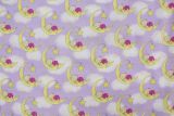 Dreamy Bear is a 100% cotton fabric with a print of sleepy bears, moons and clouds. Purple, yellow and white colors. Great for face masks!
