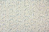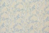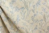 Elory Cadet is a light blue and white drapery fabric with an embroidered floral and vine pattern against a natural color background.