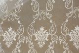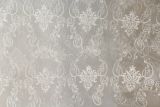 Embroidered Sheer White is a 110-inch extra-wide sheer fabric with an elegant embroidered damask pattern.