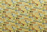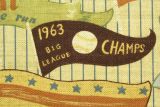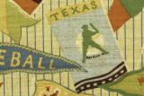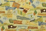 Bloomcraft Old Time Baseball is a fun sports-themed fabric featuring a vintage print of old time baseball pennants from different states in colors including brown, blue and green.