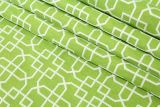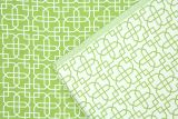 Covington Izula Island Green is a woven white geometric design against a solid green background. This fabric is reversible.