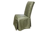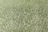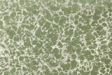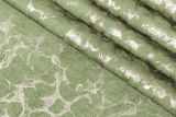 P Kaufmann Caro Lichen is printed chenille upholstery fabric in a metallic tone against a green background.