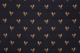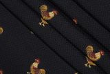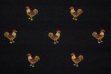 This embroidered rooster jacquard is black background woven on a chicken wire ogee background.