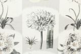 P Kaufmann Le Printemps Silver is a 100 cotton fabric with a large print of fruit and flowers in gray and white tones.