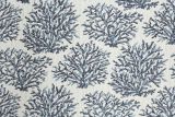 Coral Bay Dark Navy Revolution Indoor and Outdoor High Performance Fabric is a woven fabric with a nautical motif of coral in dark blue colors.