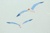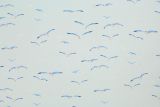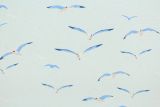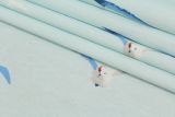 Seagulls gives a nautical feel with a print of flying seagulls against a soft blue color background.