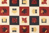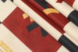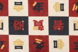 Fundy is a cotton/poly blend fabric from Spain with Asian symbols in boxes in colors including red, black, cream and gold.
