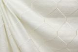 Covington Abaca White 130 is a raised embroidered geometric pattern fabric in a white color.