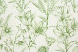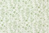 Kiley Sage is a 100% cotton fabric from Spain with a floral pattern print in green against a solid color background.
