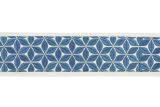 4-inch wide tape with a geometric design in teal against an ivory background.