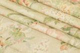 P Kaufman Mariani Barley is a 100% cotton fabric with a floral and vine print in green, red and pink colors against a neutral background.