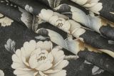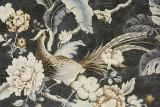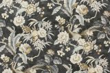 P Kaufmann Passerine Pavilli Charcoal is a 100% cotton fabric with a large print of tropical birds and flowers.