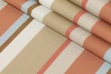 Sunbrella Beaming Mojave is a 100% solution dyed acrylic indoor and outdoor fabric with a stripe pattern in neutral and terracotta tones. Made in the USA.