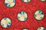 VIP Mary Angel Red is a 100% cotton fabric with a pattern of circles with angels against a red color background. Perfect for Christmas and religious holidays. Made in the USA!