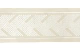 Gia Pale Gray Ivory is a 4-inch wide woven tape with a metallic gray glittering pattern against a solid color background.