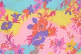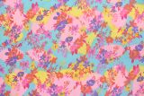 Jacar Mutli Easy Care Water Resistant is a colorful and refreshing poly cotton fabric with a floral and leaf print in colors including blue, pink, purple and yellow.Great for face masks!