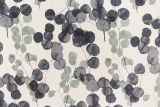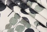 Katya TSL Indigo is a vine and leaf pattern print in gray and black colors against an ivory background. This fabric has a soft, velvety feel and is extremely durable at 100,000 double rubs.