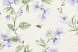 Kensie Periwinkle is a 100% cotton fabric with a colorful print of bees flying among flowers and vines.