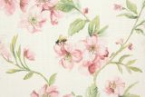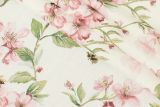 Kensie Rosewater is a 100% cotton fabric with a colorful print of bees flying among flowers and vines.