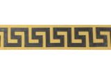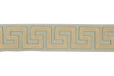Kos is a 3-inch wide upholstery trim with a faux-leather Greek Key design stitched on a solid color background.