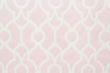 Lyon Pink White is a 100% cotton fabric with a geometric pattern design in white against a pink color background. Made in the USA.