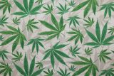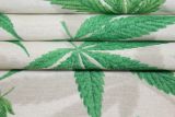 Marijuana Leafs 02 is a print featuring marijuana leaves in green and gray colors against an off-white background.